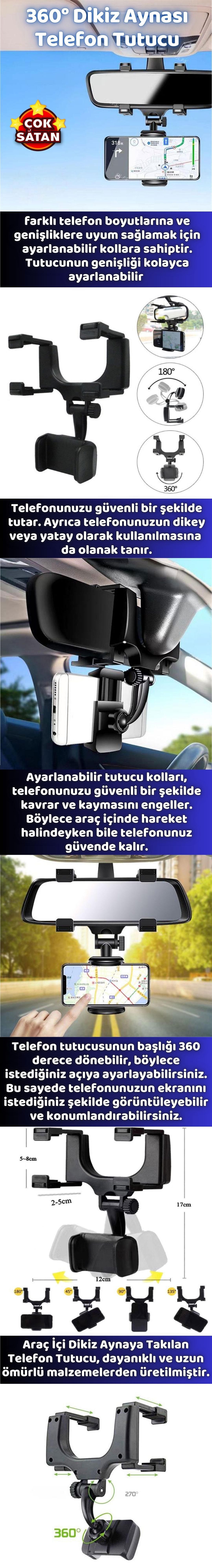 2 Dikiz Aynası 360° Dönebilen Telefon Tutucu